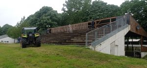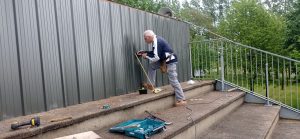 Le bardage en haut de la tribune PMH a été refait : remplacement des planches par des tôles.